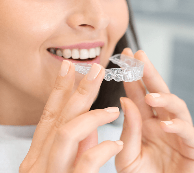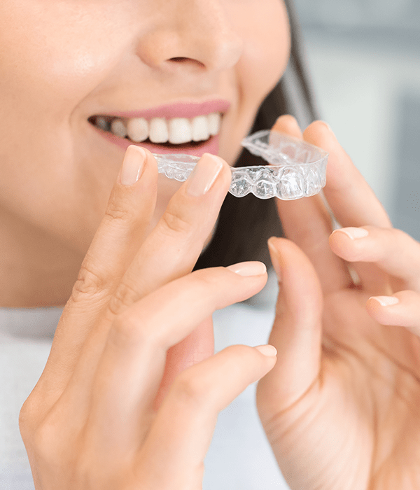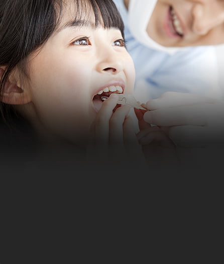 当院では成人順正の選択肢の一つとして、マウスピース型矯正治療「インビザライン・システム」を導入しています。具体的な治療方法は、樹脂製のマウスピースを所定時間装着し、一定期間ごとにマウスピースを取り換えていくことで、歯を徐々に動かしていくというものです。マウスピースは透明で目立ちにくく、樹脂製であるため金属アレルギーの方も安心してご利用頂けます。患者様自身で必要に応じて取り外せるため、食事や口腔ケアの邪魔にならず、お口の中を清潔に保つことができます。乳歯が残り、永久歯が萌出途中の混合歯列期のお子様にはインビザライン・ファーストでの治療も可能です。あらゆる年齢で対応可能なマウスピース矯正・インビザラインについて、是非ご相談ください。